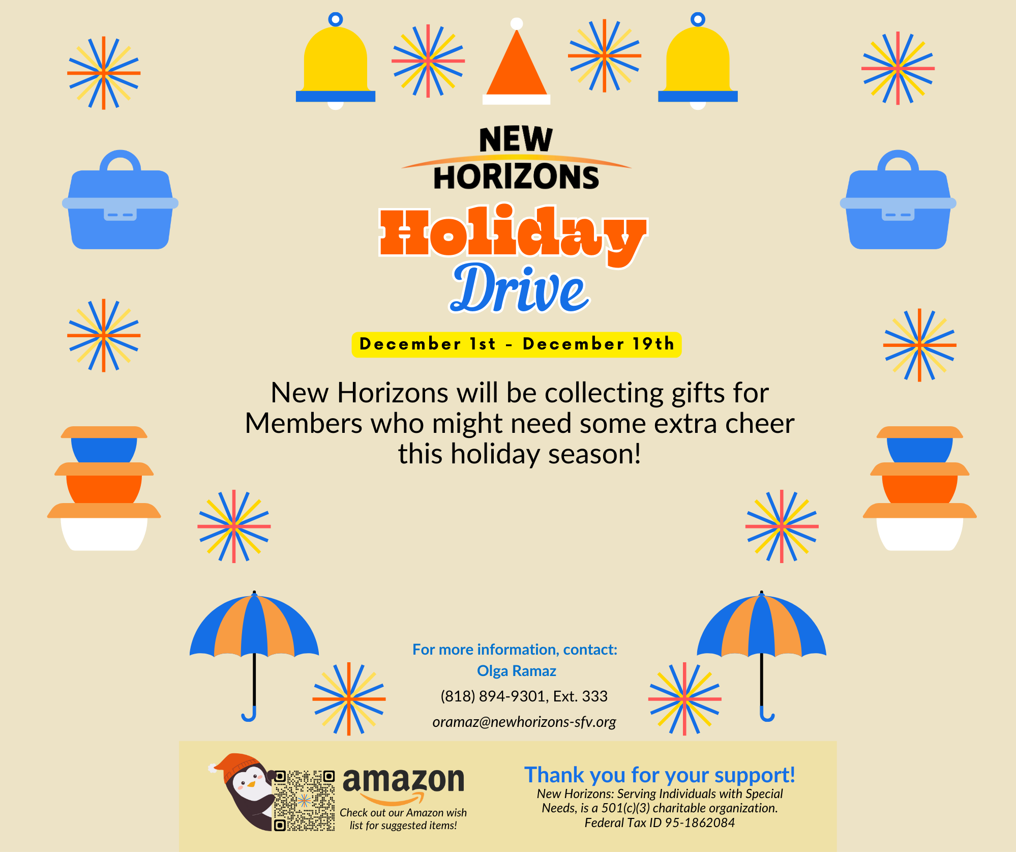 New Horizons will be collecting gifts for Members who might need some extra cheer this holiday season!